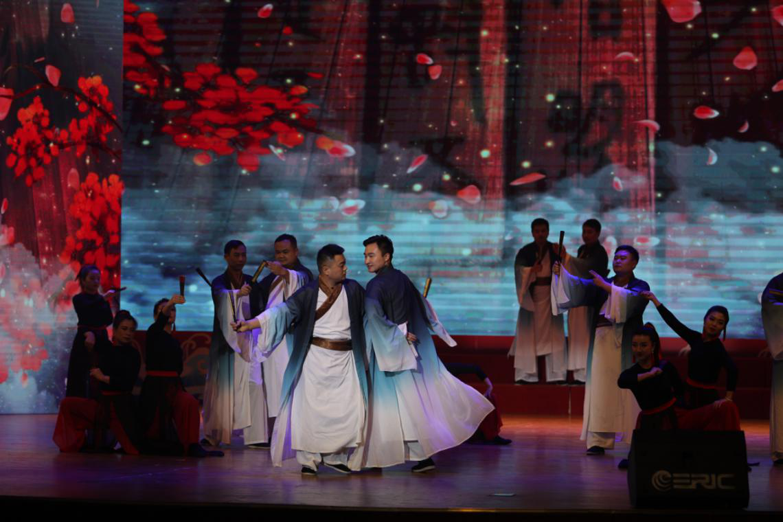 隨著音樂(lè)響起,“楚國(guó)男子”白衣飄飄,手持紙扇,“江南女子”搖曳身姿,執(zhí)扇起舞。公司參加表演的職工在舞臺(tái)上大放異彩,為現(xiàn)場(chǎng)和觀看直播的觀眾奉上一場(chǎng)美輪美奐的文化盛宴,既再現(xiàn)了楚國(guó)藝術(shù)的奇異想象和浪漫色彩,也展現(xiàn)了江南點(diǎn)軍的神秘風(fēng)情和深遠(yuǎn)文化。