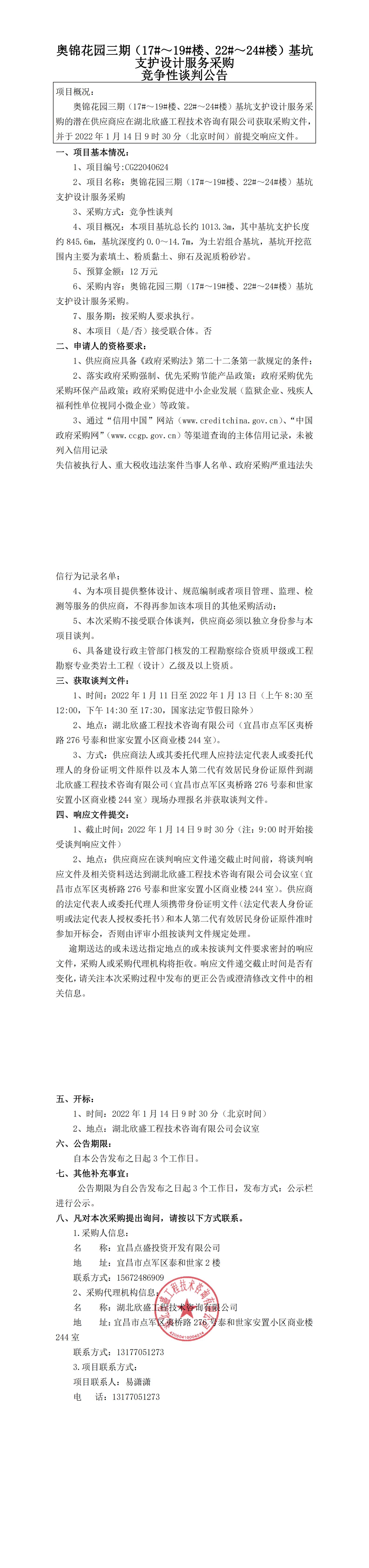 奧錦花園三期(17#~19#樓、22#~24#樓)基坑支護(hù)設(shè)計(jì)服務(wù)采購競(jìng)爭性談判公告