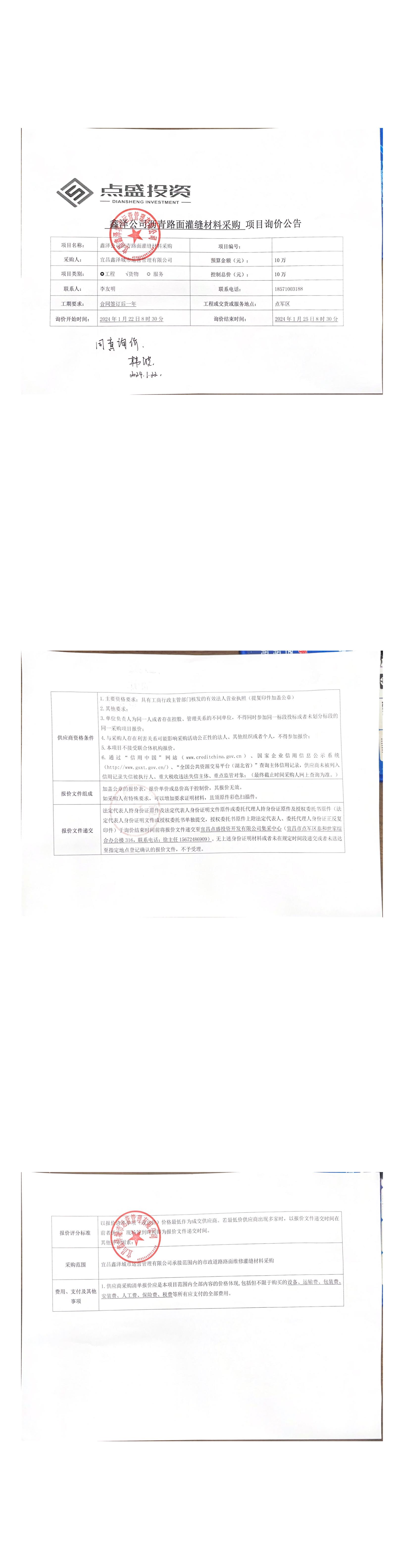 鑫澤公司瀝青路面灌縫材料詢(xún)價(jià)公告