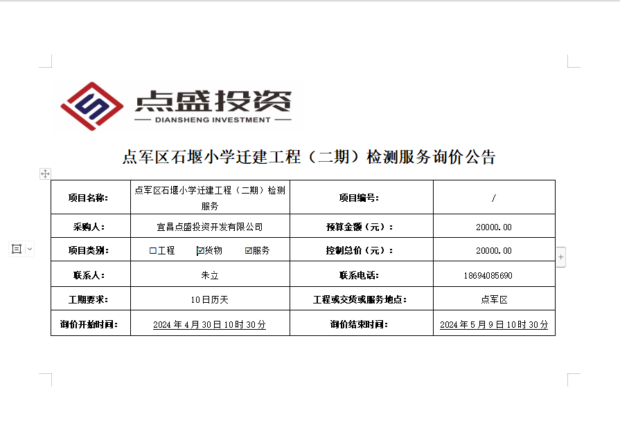發(fā)布時間:2024/4/30 來源:宜昌點盛投資開發(fā)有限公司 訪問:782