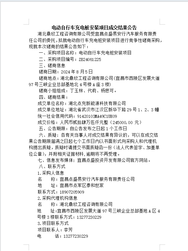 電動自行車充電樁安裝項目成交結(jié)果公告