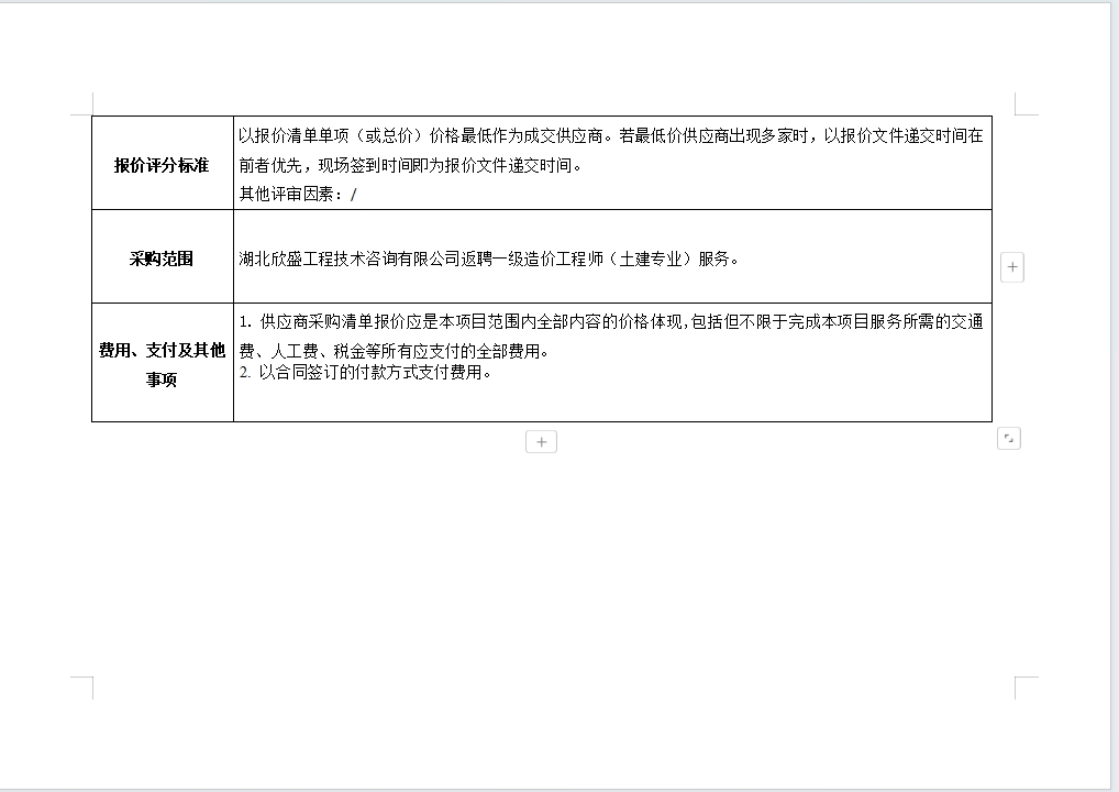 欣盛公司返聘一級造價工程師(土建專業(yè))咨詢服務(wù)詢價公告