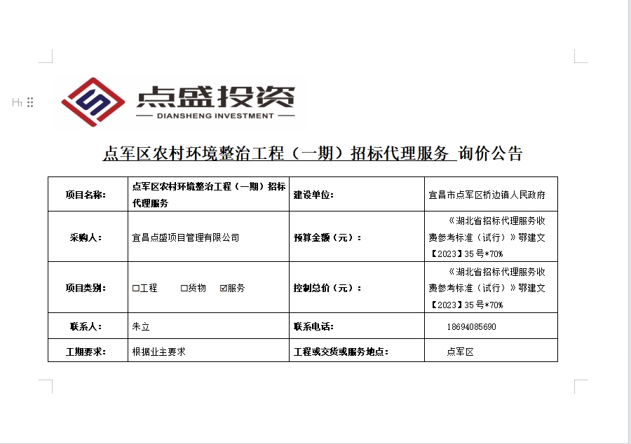 點(diǎn)軍區(qū)農(nóng)村環(huán)境整治工程(一期)招標(biāo)代理服務(wù)詢價(jià)公告