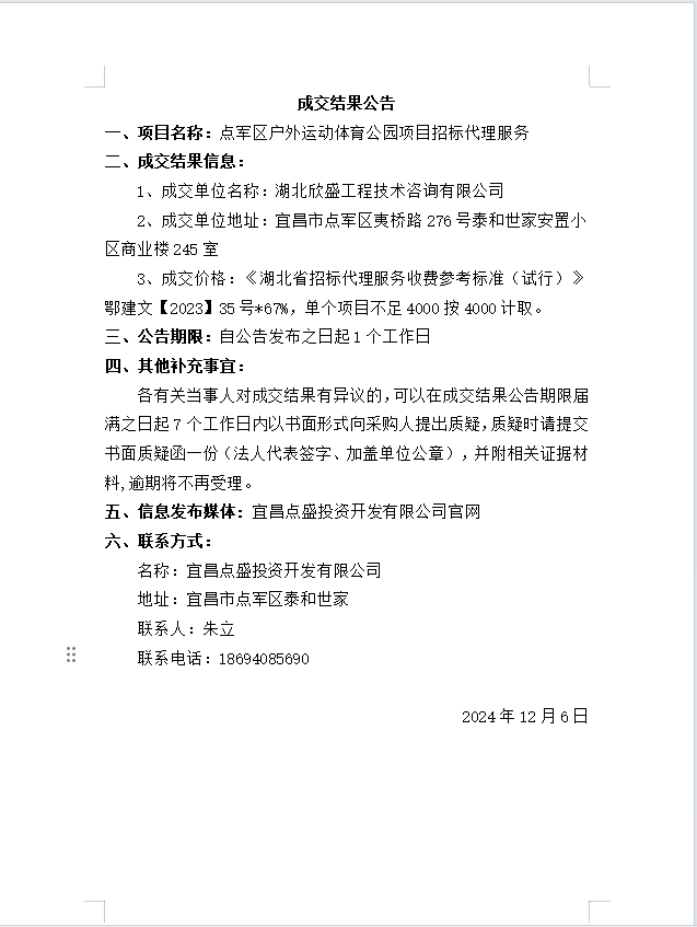 發(fā)布時間:2024/12/6 來源:宜昌點盛投資開發(fā)有限公司 訪問:3742