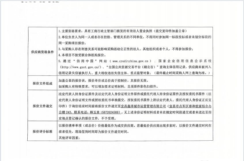 詢價(jià)公告